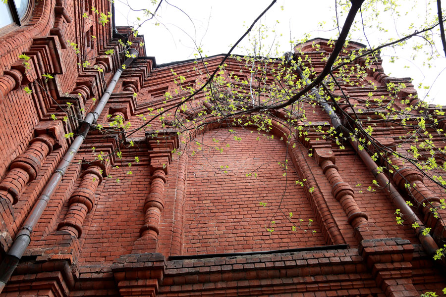 Главный собор монастыря был построен в 1891–1893 годах по проекту известного архитектора Ивана Владимирова. Храм был не только главным строением обители, но и доминировал в застройке всей Новослободской улицы. Он изначально был стилизован под XVII век — крупномасштабный, неоштукатуренный, из красного кирпича, он играл значительную градостроительную роль. Здесь часто служили московские митрополиты, неоднократно молилась великая княгиня Елизавета Федоровна. Собор закрыли в 1929 году. Станкину здание передали в 1976-м, к тому времени все убранство было вывезено, живопись замазана, снесены главы и ярус звона колокольни. Станкин собирался полностью разобрать здание, однако помогло вмешательство общественности и, в частности, скульптора Томского.