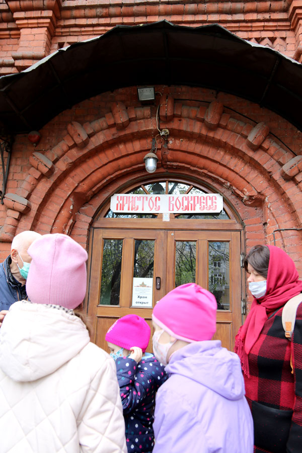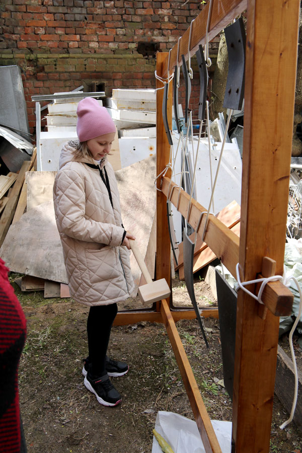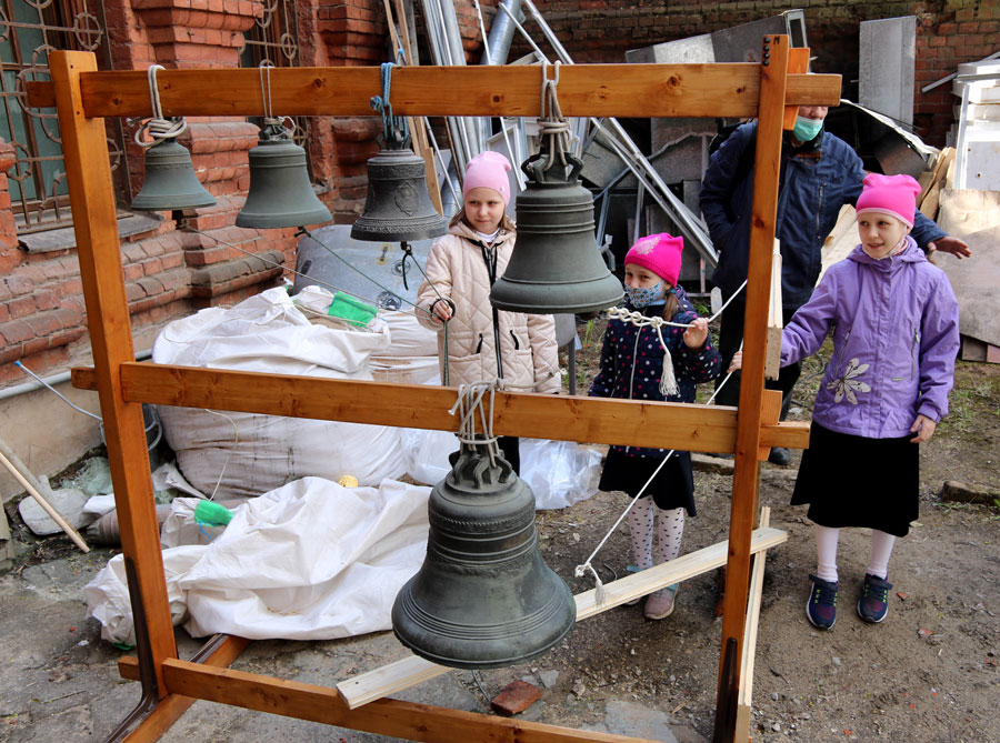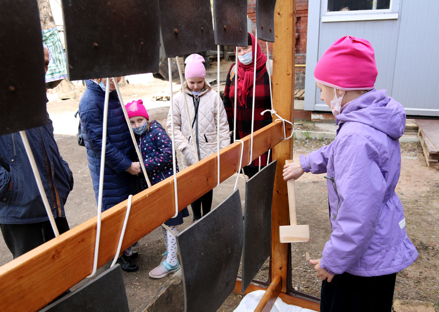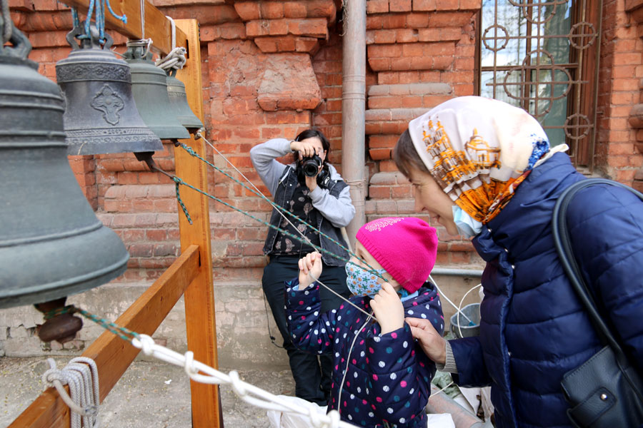 Учащиеся воскресной школы пропели в соборе тропарь Пасхи и позвонили на небольшой звоннице, где установлены колокола и била, а также погуляли в Новослободском парке.
