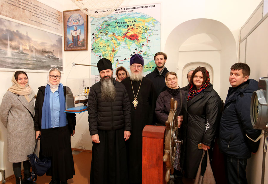 В Борисоглебской обители, основанной в 1363 г. по благословению преподобного Сергия Радонежского, паломники поклонились святым мощам устроителей обители преподобных Феодора и Павла, а также преподобного Иринарха, затворника Борисоглебского, надевали его вериги и помолились в его келье, приложились к чтимой иконе Божией Матери Римская (Лиддская) и другим святыням Борисоглебского собора и его приделов, осмотрели Благовещенскую церковь, звонницу с часами, имеющую храм Иоанна Предтечи, и надвратные церкви Сретенскую и Сергиевскую, а также мощные стены и башни монастыря. Полюбовались и видами на монастырь с разных смотровых площадок поселка. Паломники посетили музей обители, посвященный иеромонахам монастыря, служившим флотскими священниками в начале ХХ века, среди которых были погибшие при исполнении своего пастырского служения. Об истории этого музея и его экспонатах рассказал наместник обители – игумен Иоанн (Титов), а экскурсию по монастырю провела Наталья Шеина. Группа благодарит отца наместника и экскурсовода обители за интересную экскурсию.