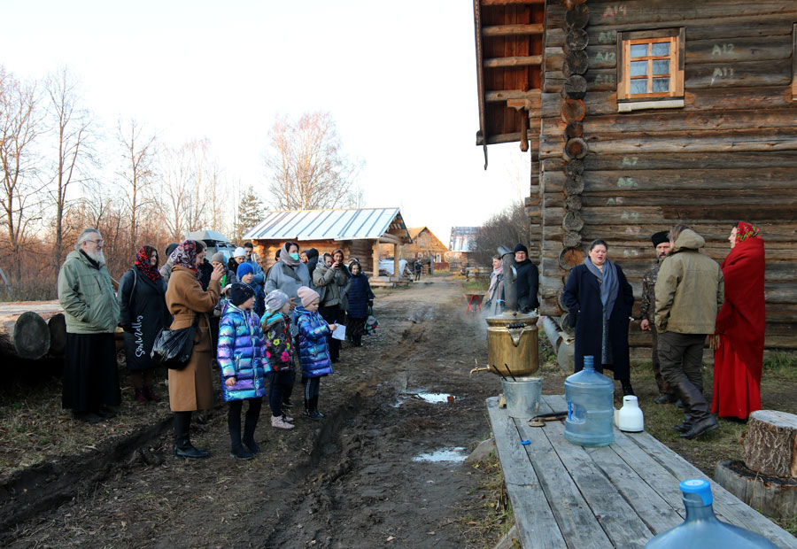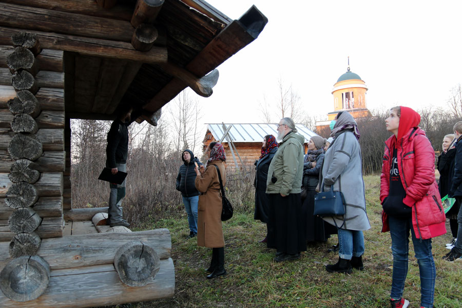 Рядом с Воздвиженским храмом расположен музей деревянного зодчества, в котором паломники окунулись в атмосферу русского севера XVIII–XIX веков. Здесь гости посетили настоящую курную избу, единственную в своем роде на территории центральной части России, амбар, привезенный из республики Коми, построенный в XIX веке, осмотрели баню «по-черному», гончарную мастерскую, понаблюдали за работой кузнецов.
