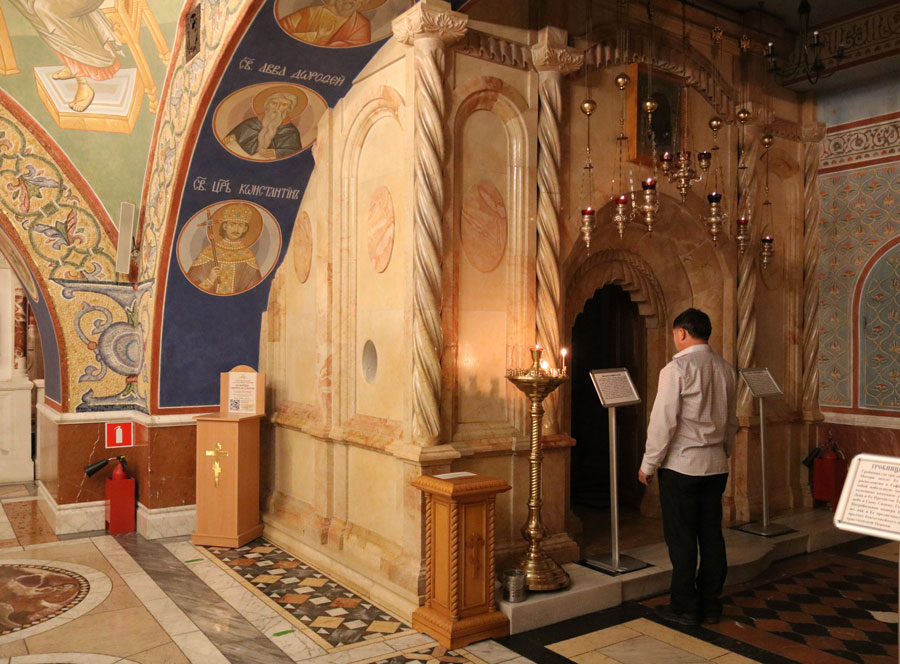 Паломники побывали в храме Покрова Пресвятой Богородицы в Ясеневе. Архитектурный ансамбль церкви выполнен в византийских традициях XI–XII вв. Стены храма выложены мозаикой, общая площадь которой составляет 2500 м². Покровский храм по своей уникальности, художественной ценности и площади мозаичного убранства не уступает мировым шедеврам церковного зодчества эпохи Византии. В нижнем храме воссозданы образы святых мест Палестины, связанных с жизнью Господа Иисуса Христа и Пресвятой Богородицы — место Рождества Христова в Вифлееме, Крест на Голгофе, Камень Помазания, Кувуклия с Гробом Господним и Гробница Пресвятой Богородицы.