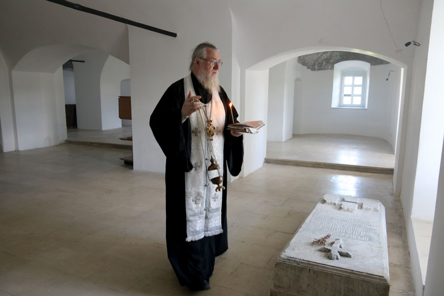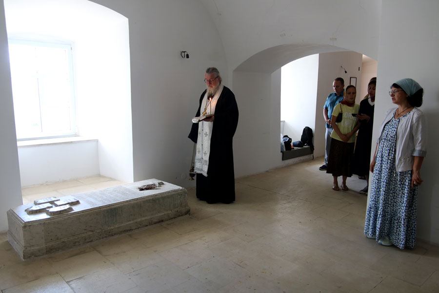 По благословению наместника обители игумена Сергия (Губина) отец Николай при общем пении собравшихся отслужил панихиду на могиле известного ученого и исследователя трудов святителя Димитрия епископа Амфилохия (Сергиевского-Казанцева) в нижнем Сергиевском храме Спасо-Преображенского собора.