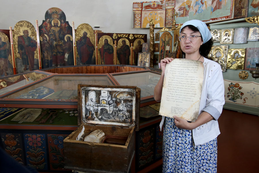 В монастыре создан большой музей, в котором собрано множество церковных древностей, причем посетителям, в том числе детям, разрешается брать в руки и изучать экспонаты и книги.