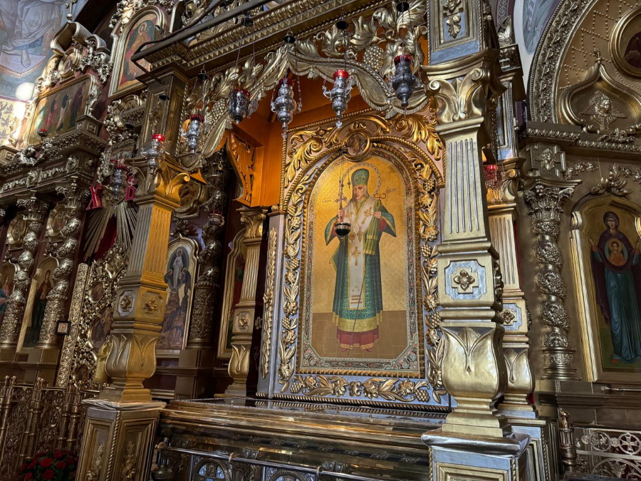 P. S. Стеклянную раку с мощами ежедневно после литургии и молебна открывают для того, чтобы верующие могли приложиться к деснице святителя. Но по просьбе иногородних паломников священнослужители милостивно открывают мощи и в другое время.