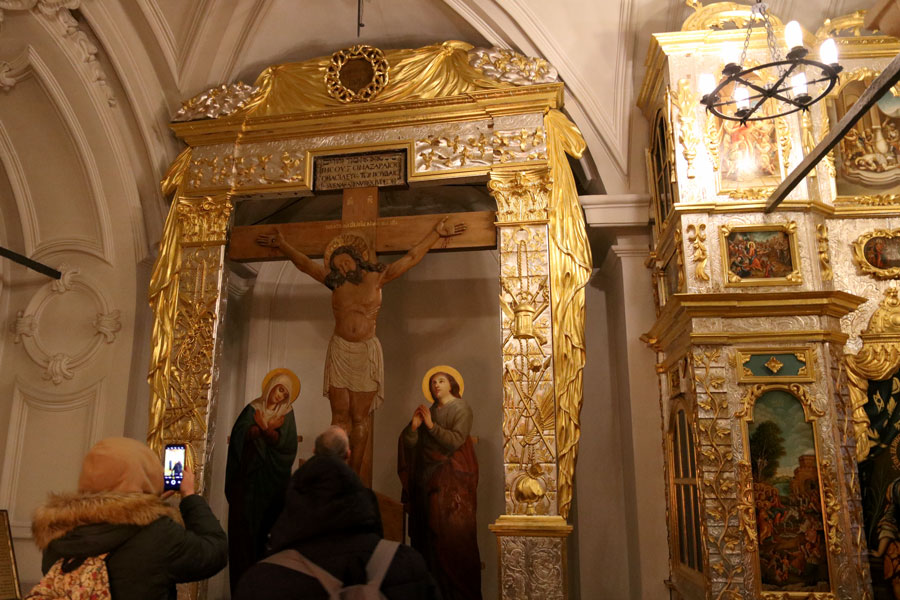 По окончании осмотра достопримечательностей Воскресенского собора и поклонения его святыням паломники помолились на вечерне и молебне святой мученице Татиане, мощи которой выносятся из алтаря собора на этот воскресный молебен.
