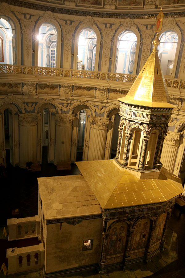 Наши паломники побывали в соборе Воскресения Христова, поклонились Гробу Господню в Кувуклии, приложились к камню Повития (помазания миром Тела Христова), к привезенному по заказу Патриарха Никона из Палестины кипарисовому Кресту в меру Креста Господня, к мощам святой мученицы Татианы и другим святыням. Учащиеся воскресной школы совместно с преподавателями спели в соборе стихиры Пасхи и другие самые известные песнопения. Паломники осмотрели все приделы основного наземного и подземного ярусов собора, а также второго этажа ротонды и храмовой части, благодаря полученным в воскресной школе знаниям прочитали «каменный путеводитель», попили воды из кладезя «Живоносный источник» в пещере Обретения Животворящего Креста Господня, а также побывали на втором и третьем ярусах колокольни собора.