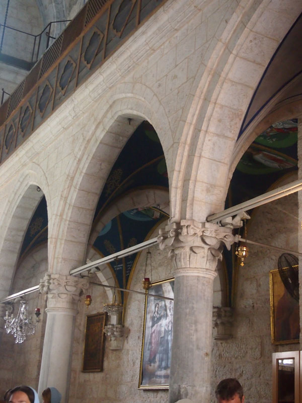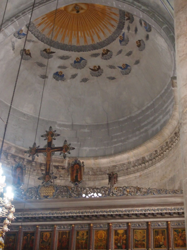 Вот мы уже стоим у входа в храм святого великомученика Георгия в Лидде (фото 1). Снаружи храм неприметный, но когда входишь вовнутрь, то перед глазами открывается огромное пространство, наполненное светом и теплотой (фото 2, 3).