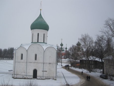 Перешагнув временные рамки на несколько десятилетий вперед, мы проездом посетили Переславль-Залесский, который также связан с именем Радонежского чудотворца. Здесь в 1354 году в Спасо-Преображенском соборе он был посвящен епископом Афанасием в сан игумена Троицкого монастыря, а в 1374 году стал крестным отцом сына Дмитрия Донского Юрия.