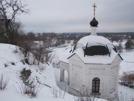 Нашей первой остановкой было село Радонеж, куда святой переехал со своими родителями в 1328 году из Ростова Великого и где прожил с ними до пострижения в монашество около семи лет. Чтобы почувствовать дух того времени, мы посетили городище Радонежа, известное еще с XI века. Сейчас здесь находится кладбище. Величественный вид, открывающийся на зимние просторы, отсутствие грубых следов цивилизации и тишина погоста перенесли нас на семь столетий назад.