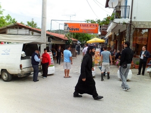 Сев на паром, мы доплыли до Дафни, а оттуда автобусом поехали в столицу Афона – Кареис (Карею). Когда минут через 40 автобусы приезжают в Кариес, их ждут маленькие маршрутки, которые развозят людей по монастырям. Каждая едет в свой монастырь. У них только одна ходка в день. Если пропустил нужную маршрутку, придется или добираться до соседних монастырей пешком, или ехать на довольно дорогом моторе. Как вариант, можно остаться тут на ночь и ехать на утренних маршрутках или вернуться на автобусе на пристань Дафни и дальше плыть морем.