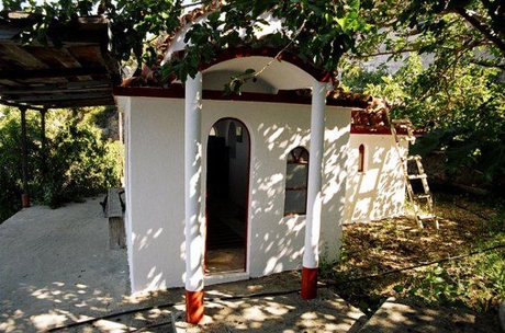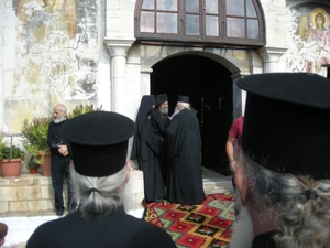Хотя у нас были заранее зарезервированы места в скиту Агиа Анна, мы остановились в скиту Продром. который к нему относится. Решение было вызвано тем, что отец Андрей знаком с герондой этого скита, Фиолептом, и перед поездкой получил приглашение посетить его. Продром находится в 15 минутах ходьбы от Агиа Анна.