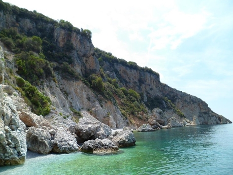 Отсюда до монастыря Агиа Павла нас мчит мини-ботик «Агиа Анна Микро» человек на 30. Всего 15 мин — и мы на месте. На юге красота Афона раскрывается во всей нешуточной мощи и красоте — высокие отвесные скалы, вода цвета чистой бирюзы, яркая сочная зелень.