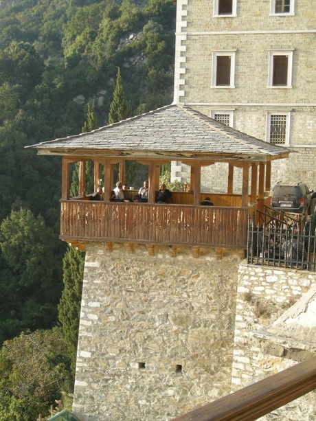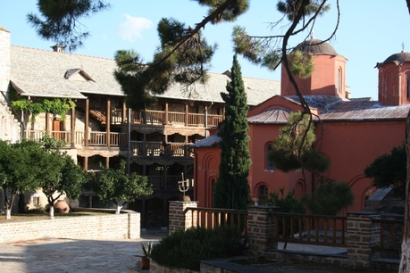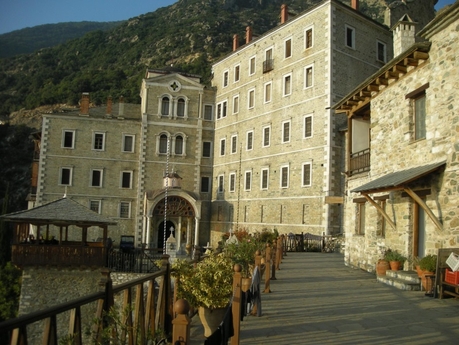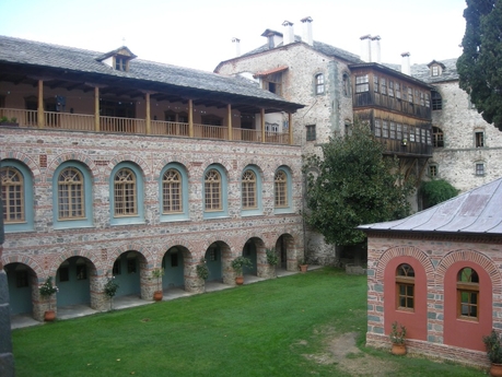 Архондарик в Ватопеде многоэтажный и даже с лифтом, а паломнические группы прибывают сюда партия за партией. Здесь есть несколько монахов, бегло говорящих по-русски.