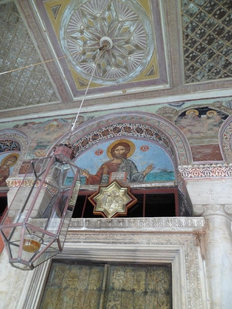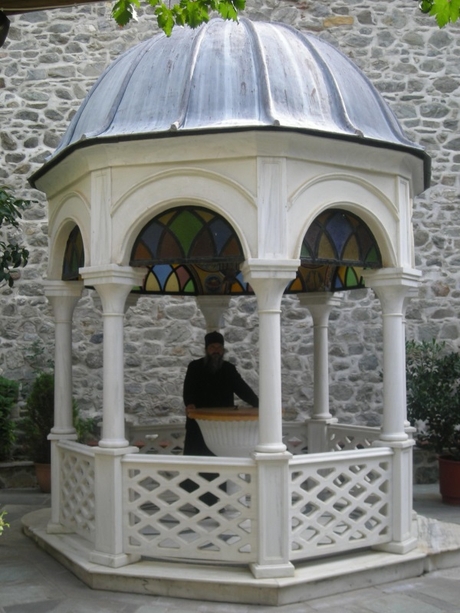 В Лавре, где мы сделали остановку, находятся две чудотворные иконы Божией Матери – «Кукузелисса», названная по имени святого подвижника XII века Иоанна Кукузеля, и «Экономисса» – и очень много других святынь. Здесь хранятся три креста с частицами Честного и Животворящего Древа Господня, части тернового венца Спасителя, губки и приношений волхвов, честные власы и пелены Господа Иисуса Христа, власы и млеко Пресвятой Богородицы, кровь Иоанна Предтечи, целиком мощи прп. Иоанна Кукузеля, мощи (за исключением главы) прп. Акакия Нового Кавсокаливита, главы и большое число частиц мощей многих угодников Божиих.