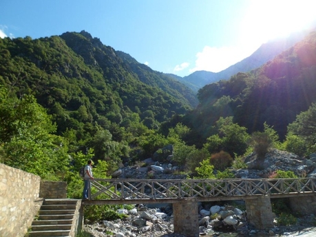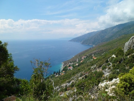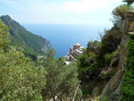 До скита Агиа Анна – полтора часа ходу по горной тропе над морем. Идти здесь несложно, тропка переходит в узкий серпантин с резким и длинным подъемом в гору по узким ступеням и с огромной пропастью справа. Невероятной красоты виды открываются, когда ты уже оказываешься на горном перевале. Ближе к скиту Святой Анны дорога становится сложной, за счет крутости.