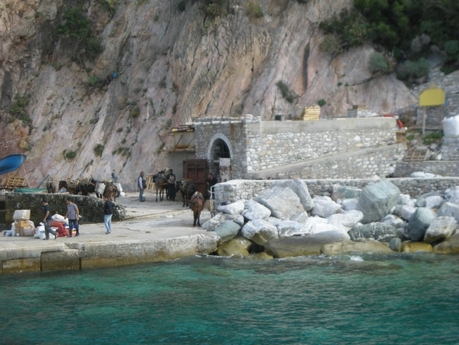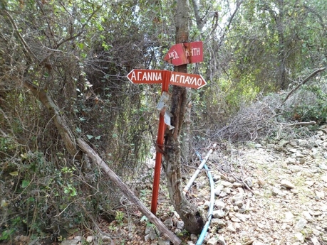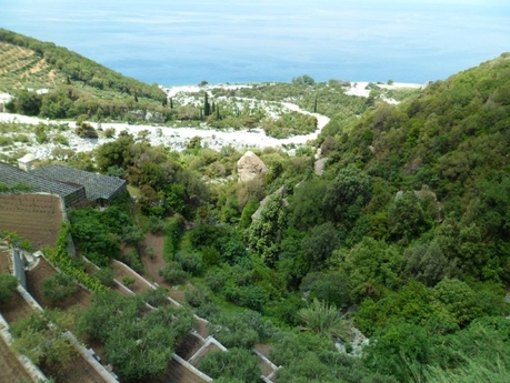 Вернувшись на пароме в Агиа Павла и забрав свои вещи, мы пешком отправились в скит Агиа Анна, пройдя в начале пути вдоль монастырских садов и огородов.