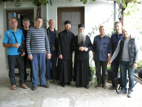 Перед нашим уходом из скита геронда Фиолепт побеседовал с нами и взял записки на поминовение. Проводив нас до ворот скита, он проявил заботу о нас, благословив дать нам провожатого и лошаков для перевозки вещей к пристани, на спуск к которой ушло 50 минут.