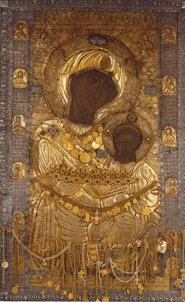 В Ватопедском монастыре наша группа помолилась перед несколькими чудотворными иконами Божией Матери. Это «Ктиторская», «Отрада, или Утешение», «Закланная» («Эсфагмени»), «Предвозвестительница», «Милующая», «Елеоточивая» («Элеовритисса», «Дохиарисса»), «Простреленная» («Пировлифиса»), «Всецарица»… Кроме того, в обители находится великое множество святынь: Честной Пояс Богородицы (частица которого благоговейно хранится в Обыденском храме), главы свт. Григория Богослова, свт. Андрея Критского и других святых, правая нога вмч. Пантелеимона, большая кость руки мч. Трифона, рука мц. Марины, крест императора Константина, трость от Страстей Господних, перст Иоанна Предтечи, десница ап. Андрея, стопа ап. Варфоломея и большое число частиц мощей разных угодников Божиих.