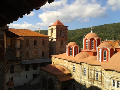 Несколько слов о богослужениях на Афоне. Афон, так же как и Русская Православная Церковь, живет по юлианскому календарю. Каждый монастырь ежедневно пребывает в ритме традиционного суточного круга богослужений, состоящего из девяти служб. Это есть основа монастырской жизни. Приветствуется, если паломник будет участвовать в монастырских службах наравне с монахами, хотя это и нелегко для мирянина. Если паломник приехал как турист и не участвует в богослужениях, никто его принуждать к тому не будет. Однако это не останется без внимания. И, кто знает, может, в следующий раз этот паломник получит отказ в посещении монастыря.