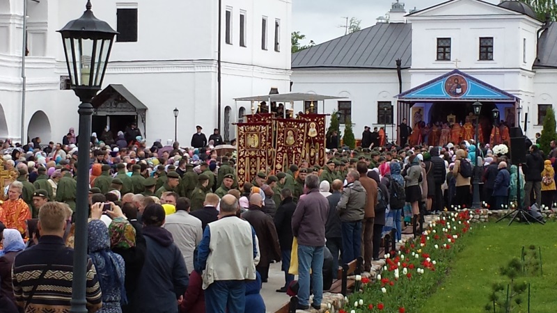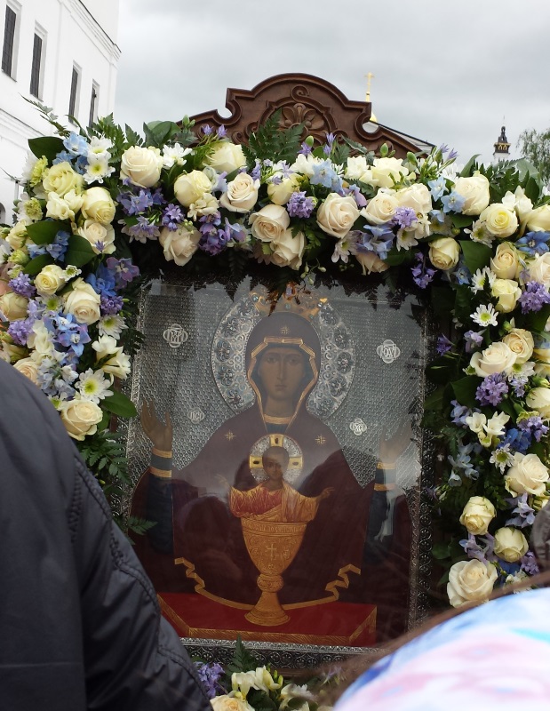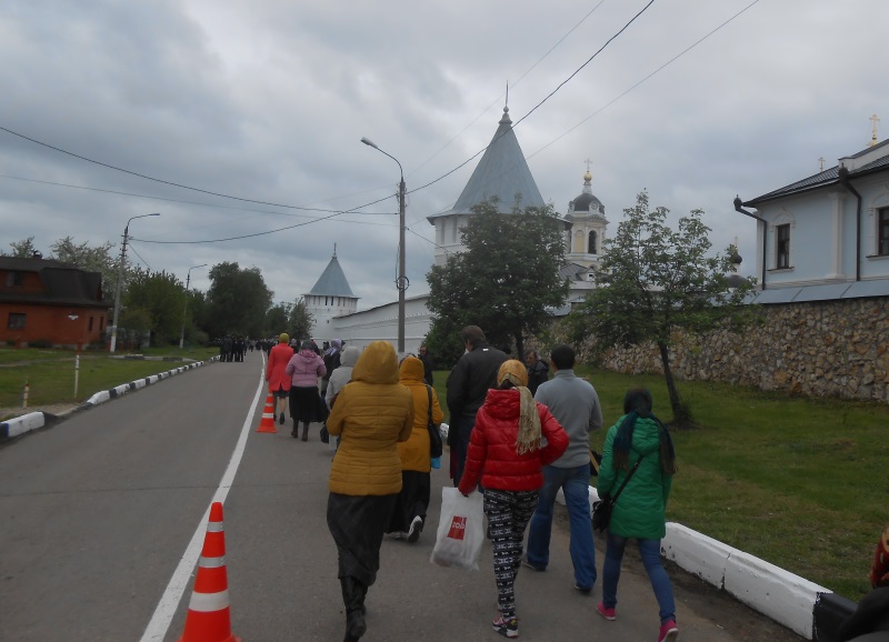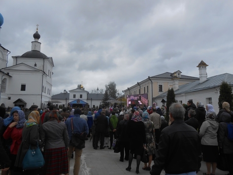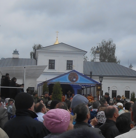 К концу литургии я вышла за ворота обители, чтобы здесь присоединиться к уже готовящемуся крестному ходу — и неожиданно встретила еще одну обыденскую паломницу, Людмилу, которая, оказывается, приехала на праздник накануне и остановилась в монастырской гостинице. Как любят говорить обыденцы — нечаянная радость!