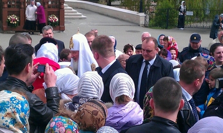 Слава Богу, быстро и радостно дошли на площади, на которой был устроен навес для проведения молебна. Сюда же пришел еще один крестный ход — из Владычного монастыря. И вместе с ним — еще один образ Божией Матери «Неупиваемая Чаша», который находится в женской обители и от которого также происходят многочисленные чудеса. Патриарх совершил перед чудотворными иконами праздничный молебен, закончив его молитвой об избавлении от пьянства людей, подверженных этому недугу… А потом участники двух крестных ходов смогли пройти под обеими иконами и получили в подарок иконочки с патриаршим благословением.