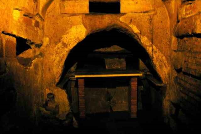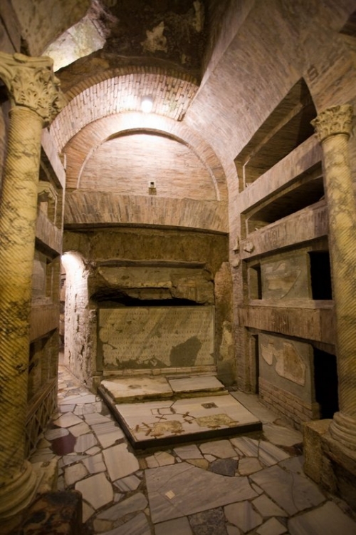 Примечательно, что словом «катакомбы», изначально относившимся только к месту, где среди прочих христиан был похоронен святой Севастиан, постепенно стали наименоваться все подземные захоронения. В Древнем Риме усопших кремировали, их нельзя было хоронить в черте города, и катакомбы использовались как кладбища. В пластах туфа, мягкого и легкого в обработке, христиане прокладывали коридоры с углублениями для тел. Во времена гонений они собирались здесь вместе и на надгробных плитах мучеников совершали литургию.