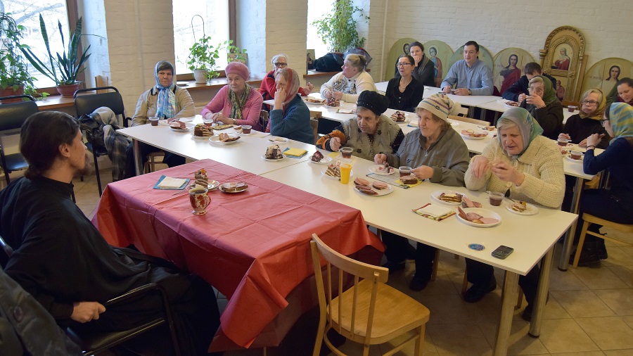 По благословению настоятеля храма пророка Божия Илии в Обыденском переулке протоиерея Максима Шевцова 22 января состоялась очередная встреча обыденцев с женщинами, попавшими в трудные жизненные ситуации и проживающими в отделении «Ясенево» ГКУ ЦСА «Люблино». Их приезд стал возможен благодаря совместным усилиям прихожан храма, регулярно посещающим ЦСА, и команды ежегодной благотворительной акции «Мешок Деда Мороза», которая предоставила микроавтобус.