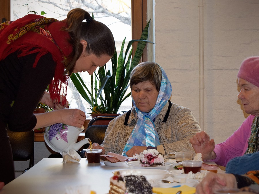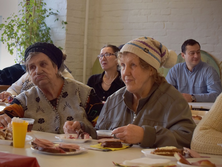 Духовно и эмоционально насыщенная встреча закончилась подарками — социальная служба храма передала йогурты и чудо-творожки всем проживающим в отделении, а на сегодняшний день это 51 человек.