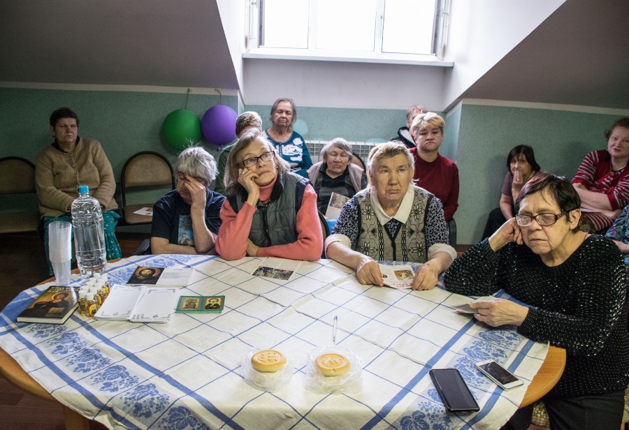С искренним чувством все вместе помолились блаженной, попросив ее помощи в решении насущных проблем. Затем женщины получили в подарок иконки святой Матроны с молитвой и освященный на ее мощах елей. А еще — заламинированные тексты Символа веры и молитвы «Отче наш», и сразу смогли убедиться, как удобно пользоваться ими во время совместной молитвы.