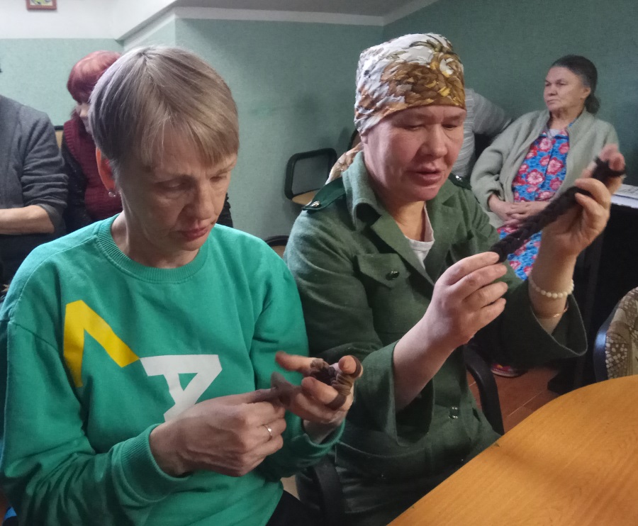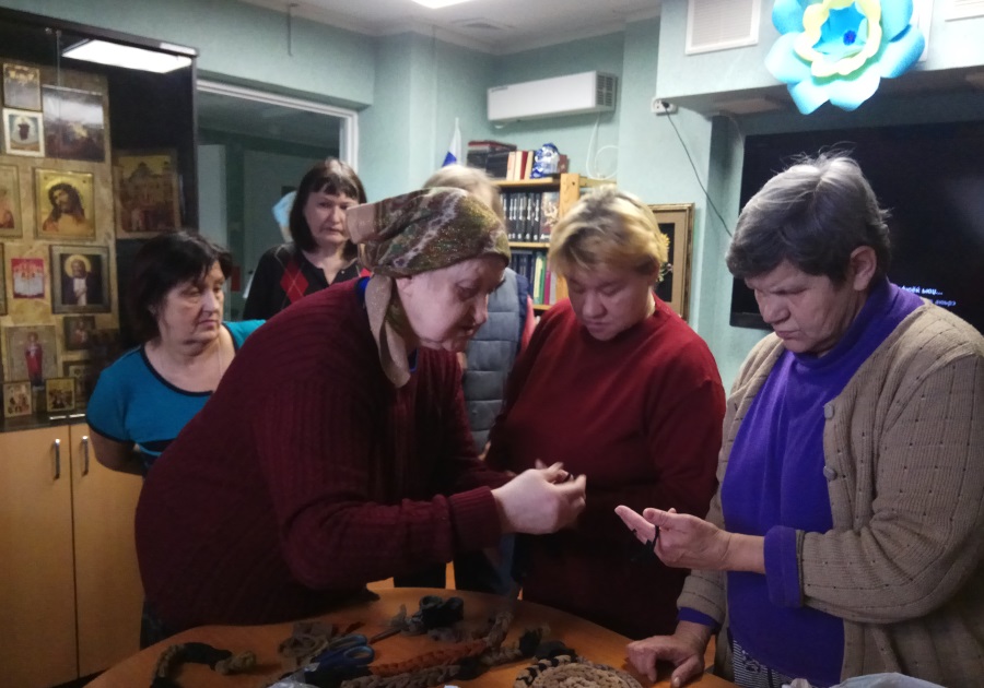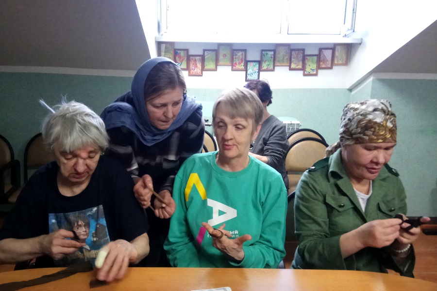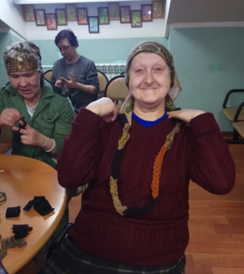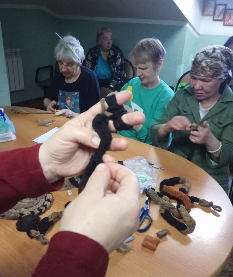 Встречу продолжил мастер-класс по ручному плетению ковриков из капрона и хлопка. Рукоделие вдохновило не только проживающих в центре, но и администрацию, с удовольствием присоединившуюся к этому занятию, результатом которого стали оригинальные коврики.