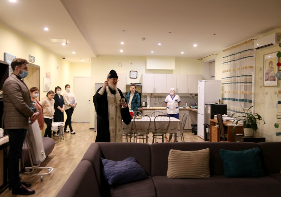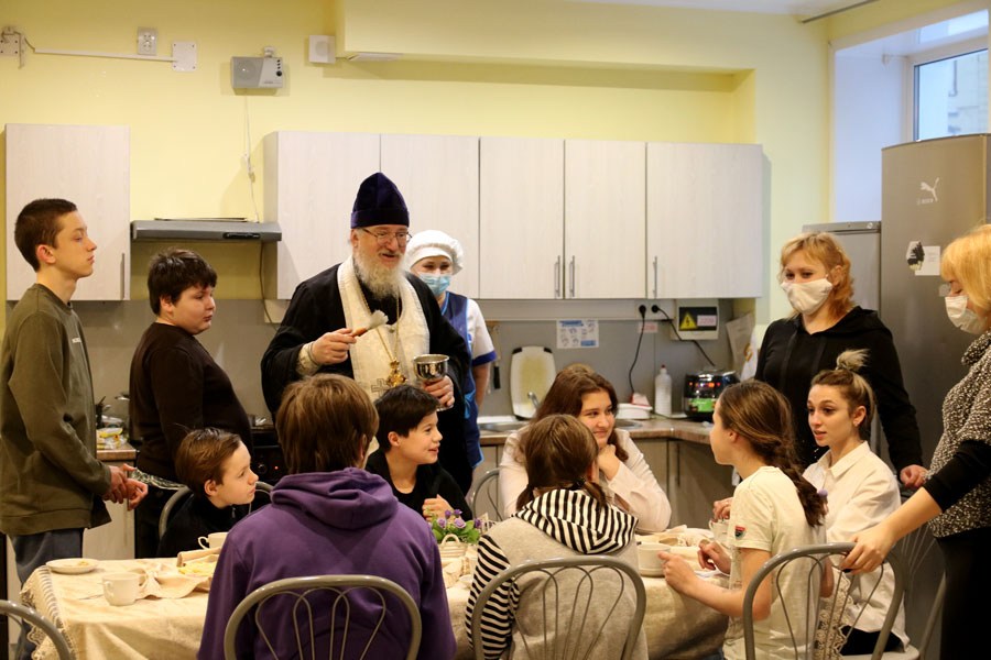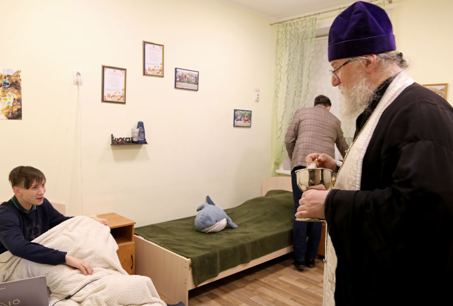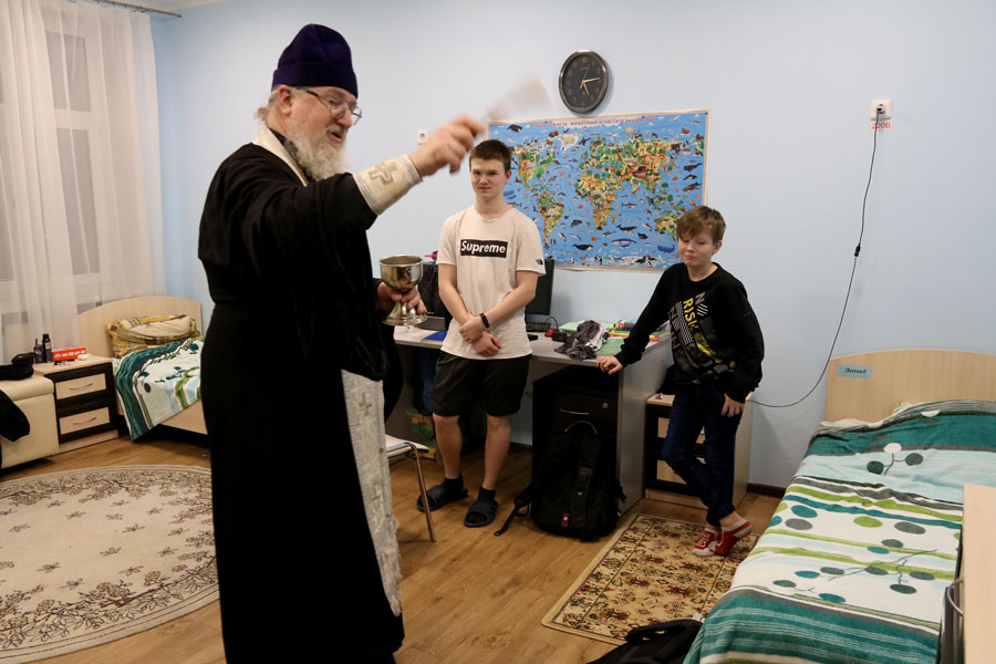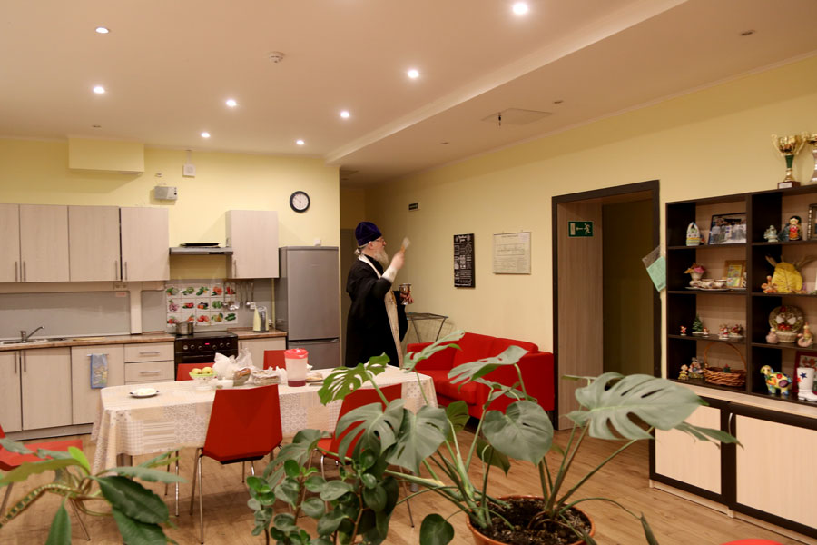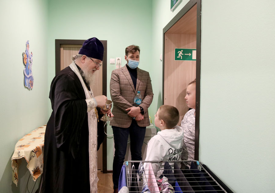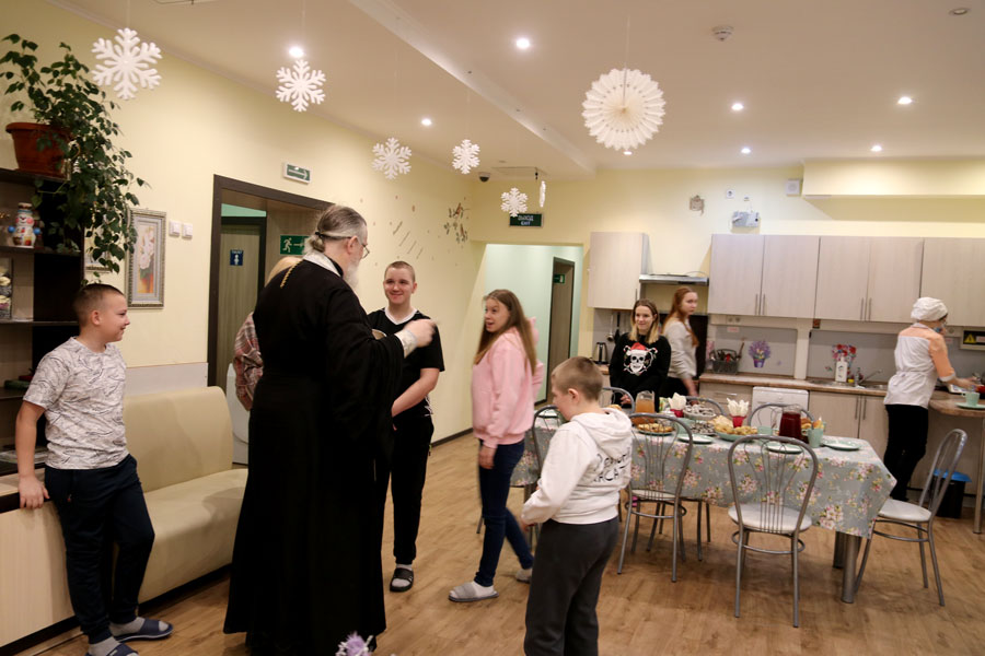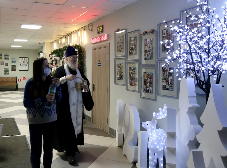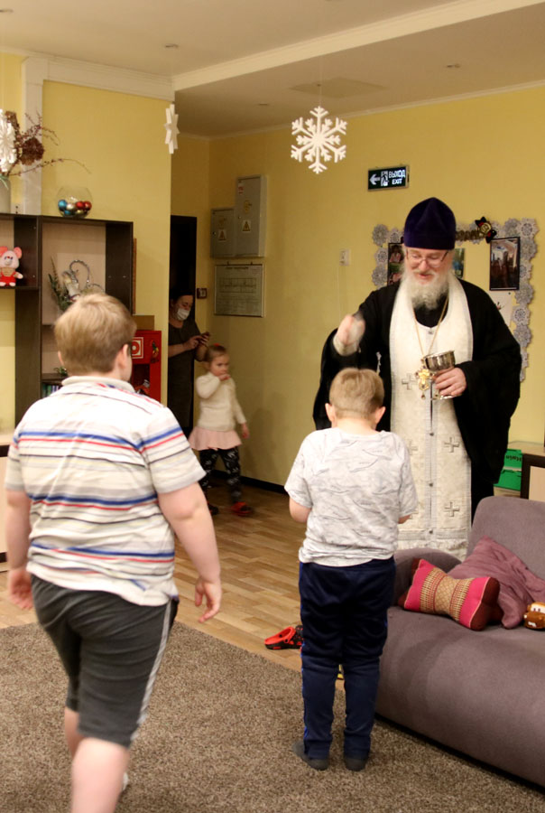 По согласованию с администрацией отец Николай традиционно окропил святой богоявленской водой помещения четырехэтажного центра, а также выразивших желание сотрудников и детей, в том числе болящих. Дети радостно встретили батюшку, с которым многие из них хорошо знакомы — отец Николай 17 лет окормляет это детское учреждение.