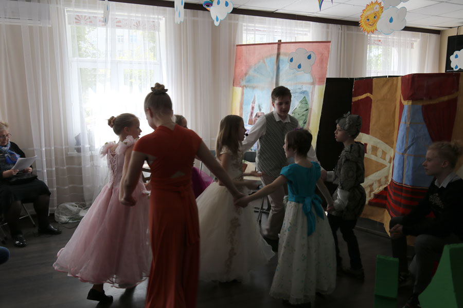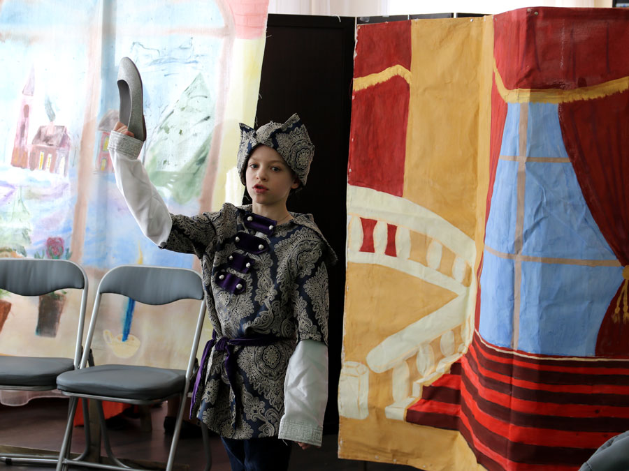 Представление состоялось в Государственном бюджетном учреждении города Москвы Городском ресурсном центре семейного устройства детей-сирот и детей, оставшихся без попечения родителей, «Спутник» Департамента труда и социальной защиты населения города Москвы. Перед началом спектакля к детям обратился клирик храма пророка Божия Илии а Обыденском переулке протоиерей Николай Скурат. Учащиеся воскресной школы показали спектакль по сказке Шарля Перо «Золушка» (режиссер-постановщик – педагог Т. Н. Семенова). Декорации выполнили сами учащиеся и их родители. Транспортировкой декораций и реквизита занималась ответственная за воскресную школу Т. В. Качала. Спектакль был тепло встречен зрителями.