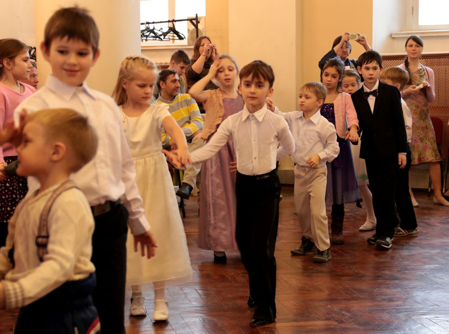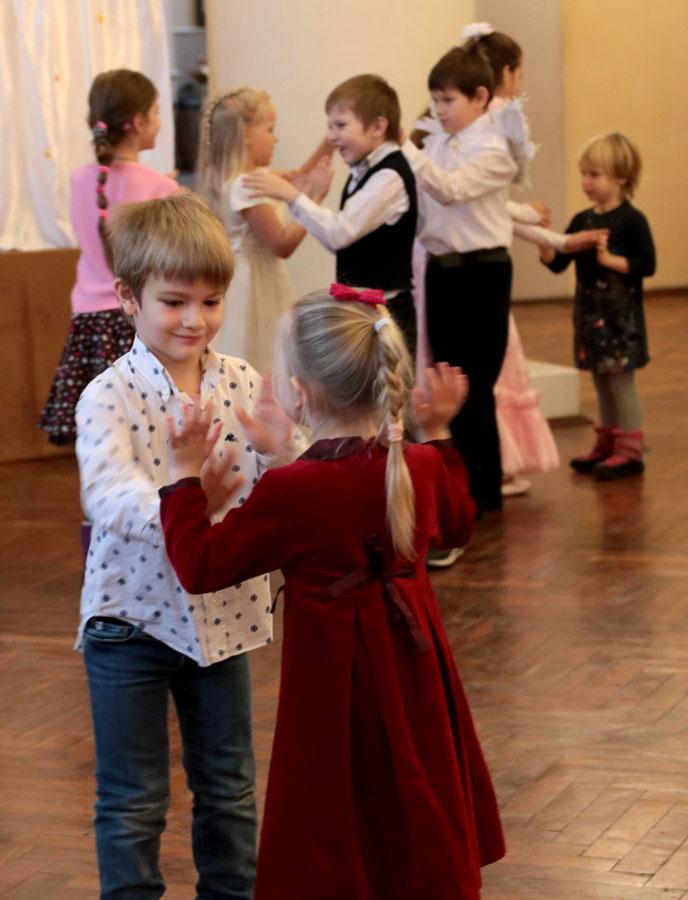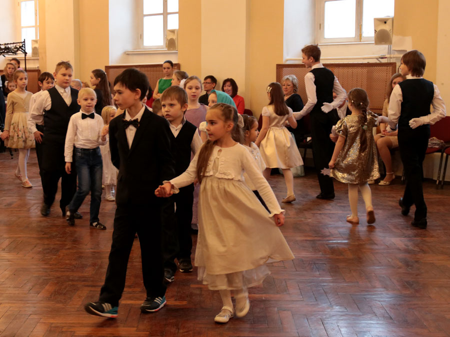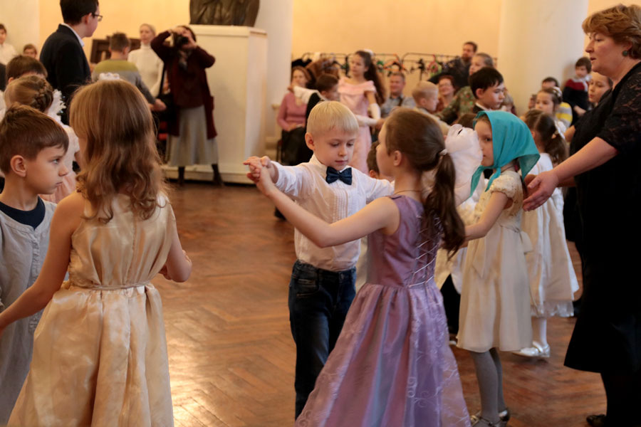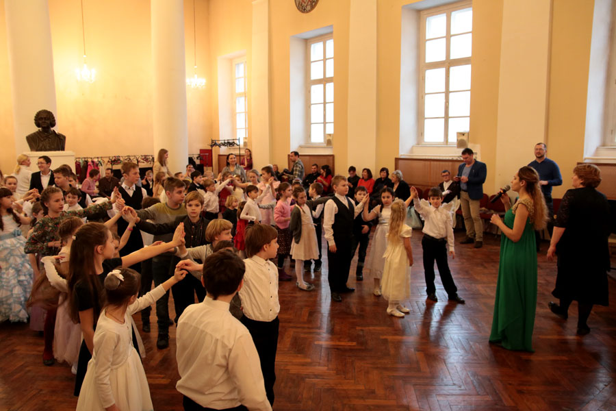 Несколько раз в течение праздника зрительный зал превращался в бальный. Под руководством опытных хореографов дети разучили несложные танцевальные движения — получился настоящий красивый танец.