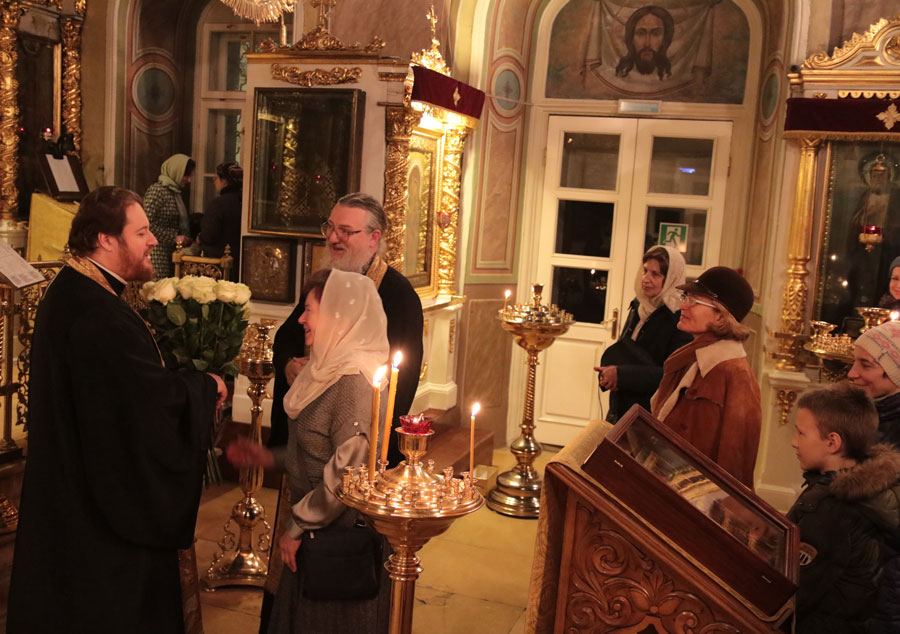 Накануне вечером после рабочего дня и по окончании уставного богослужения дня памяти святого преподобного Максима Исповедника взрослые учащиеся воскресной церковно-приходской школы поздравили отца настоятеля с праздником и тезоименитством.