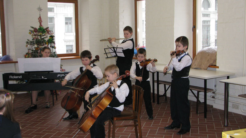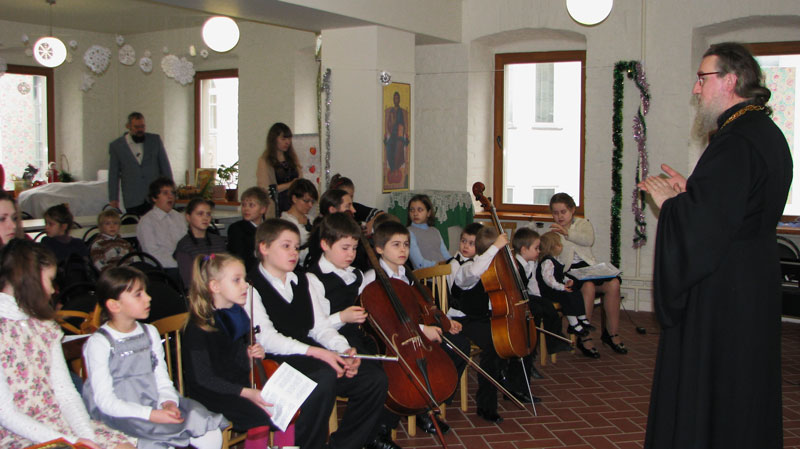 Следующий детский музыкальный праздник предполагается провести 9 марта.да в храме святой мученицы Татианы прошел Рождественский фестиваль воскресных школ Центрального благочиния. В программе фестиваля были рождественские песни и колядки, небольшие сценки на тему Рождества. Ребята из многодетной семьи нашего прихода составили ансамбль из шести исполнителей, который исполнил музыку Евгения Доги из кинофильма «Мой ласковый и нежный зверь».