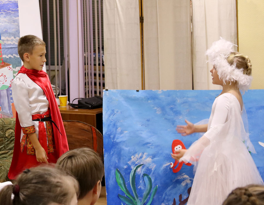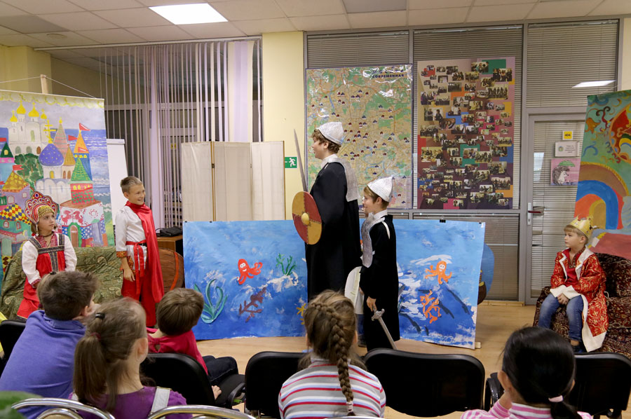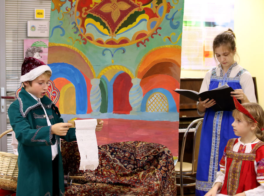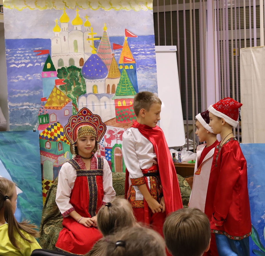 Четырнадцать маленьких артистов побывали в Городском ресурсном центре семейного устройства детей-сирот и детей, оставшихся без попечения родителей (бывший детский дом № 19). Собравшихся поприветствовал клирик храма пророка Божия Илии в Обыденском переулке протоиерей Николай Скурат. Затем ребята организовали небольшой концерт народных и патриотических песен и показали спектакль по мотивам «Сказки о царе Салтане» А. С. Пушкина. Постановщиком-режиссером выступила педагог воскресной школы Т. Н. Семенова, декорации были нарисованы преподавателем М. В. Судаковой, учащимися и их родителями и молодежью прихода, костюмами артистов обеспечила педагог С.А. Судакова. В конце встречи для ребят была организована трапеза с соками, чаем и пирожками. Часть окормляемых центром детей не смогла присутствовать на детском празднике, но им было передано угощение.