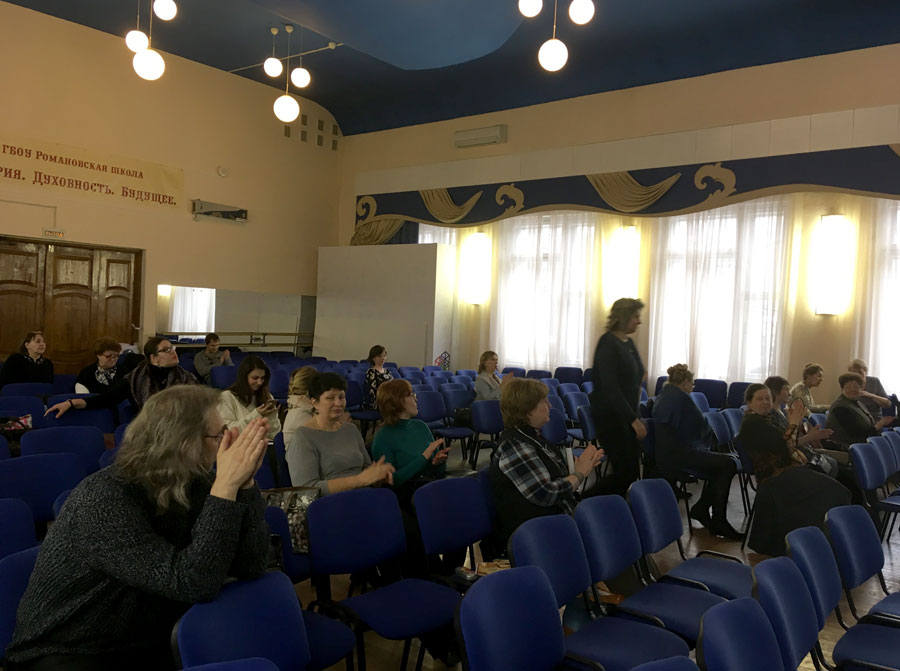 Для собравшихся прозвучали доклады, посвященные православной книге. С сообщением о православных храмах столицы выступила преподаватель нашей воскресной школы, общественный методист Центрального викариатства Т. Н. Семенова. Она подготовила интересную презентацию об известных московских храмах, рассказала о журнале «Храмы Москвы» и о том, как его можно использовать на уроках по основам православной культуры. Доклад вызвал большой интерес педагогов, которые выразили желание сотрудничать в вопросах организации пеших путешествий к московским храмам и изучения исторических мест и памятников тех районов, где это храмы находятся.