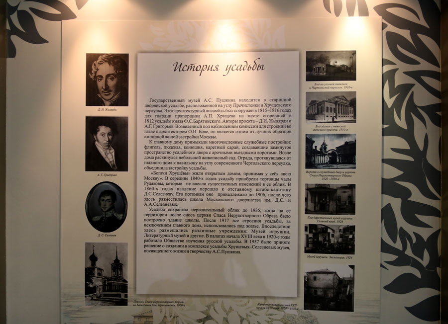 В Государственном музее А. С. Пушкина в Белокаменных палатах XVII века открылась выставка «Венок усадьбам… К 100-летию основания и 30-летию возрождения Общества изучения русской усадьбы (ОИРУ)». Общество было создано по инициативе молодого талантливого искусствоведа В. В. Згуры в 1922 года. Оно занималось регистрацией усадеб, составляло библиографию и иконографические указатели, собирало печатные и иконографические материалы, разрабатывало методику описания памятников архитектуры и фотографирования объектов.