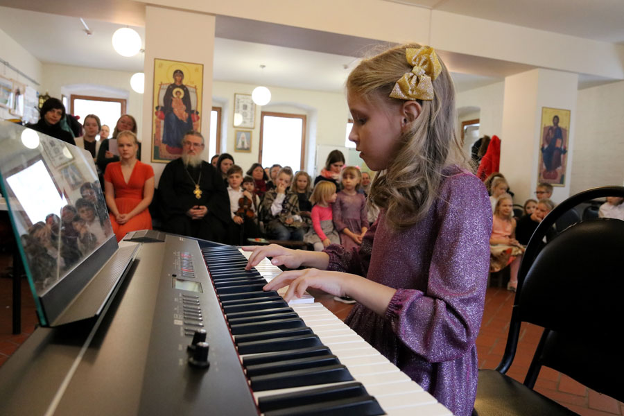 Детский хор воскресной школы под управлением А. В. Акшаевой спел тропари разным праздникам и святым. В музыкально-инструментальном отделении прозвучали пианино, скрипка, домра и флейта, были исполнены произведения Л. В. Бетховена, И. С. Баха, П. И. Чайковского, Ф. Мендельсона, К. М. Вебера, Д. Штейбельта, народные песни. Хор учащихся воскресной школы специально для праздника разучил песню про осень в музыкальном сопровождении маракасов, ложек и колокольчиков. Вместе с родителями, которые особенно помогают деятельности школы, дети исполнили инструментальный номер «Ладошки». Ребята также пели песни, рассказывали стихи.