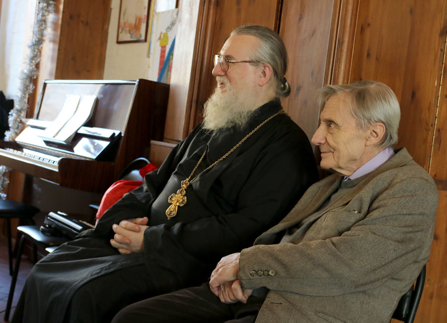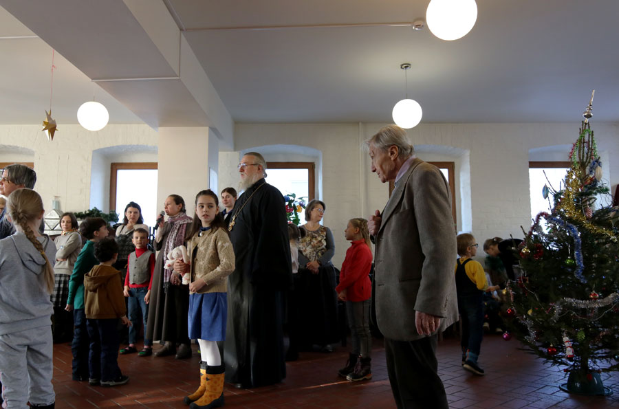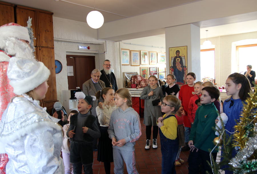 Собравшиеся пропели тропарь праздника Рождества Христова. Затем с приветственным словом к детям и родителям обратился духовник воскресной школы протоиерей Николай Скурат. Он поздравил всех с Рождеством Христовым и передал приветствие и благословение настоятеля храма отца Максима.