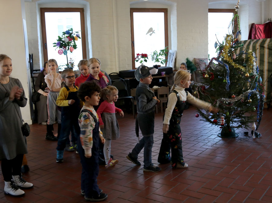 Приходская ёлка была проведена силами преподавателей, учеников и их родителей. Благодарим выпускников воскресной школы Максима и Варвару, гусляра Анастасию и семью Гуровых, принявших активное участие в организации детского праздника!
