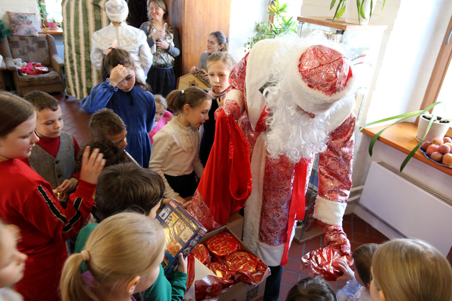 В завершение праздника все дети получили от прихода специальные сладкие подарки и игрушки, которые каждому вручил Дед Мороз. В этом году в детском рождественском празднике, несмотря на лютый мороз на улице, приняло участие более двадцати детей.