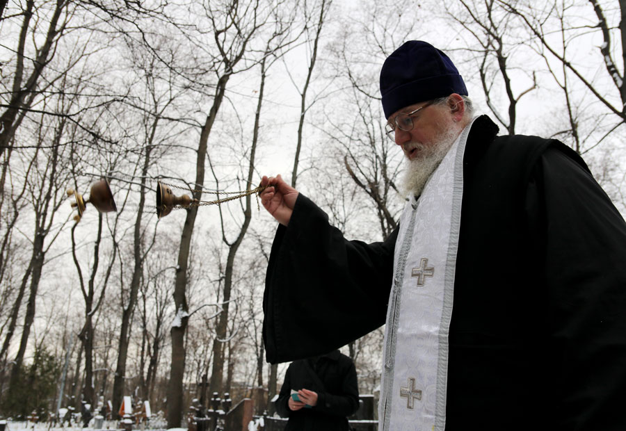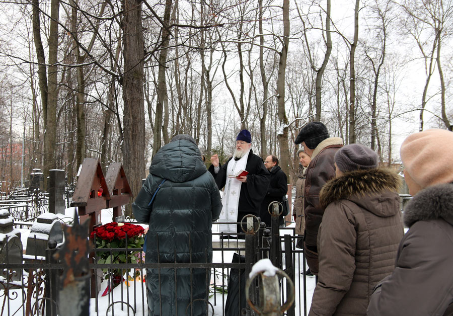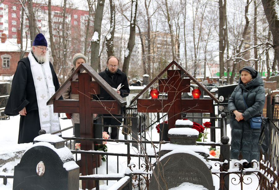 После молитвы на месте упокоения отца Александра собравшиеся не смогли традиционно посетить могилы почивших клириков и прихожан нашего храма и пропели им «вечную память» у могилы отца Александра – в связи с заснеженностью кладбища к большинству чтимых могил доступа не было. К месту погребения нашего батюшки по глубокому снегу была протоптана тропа.