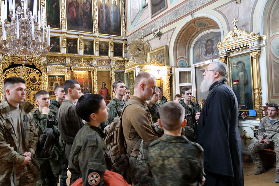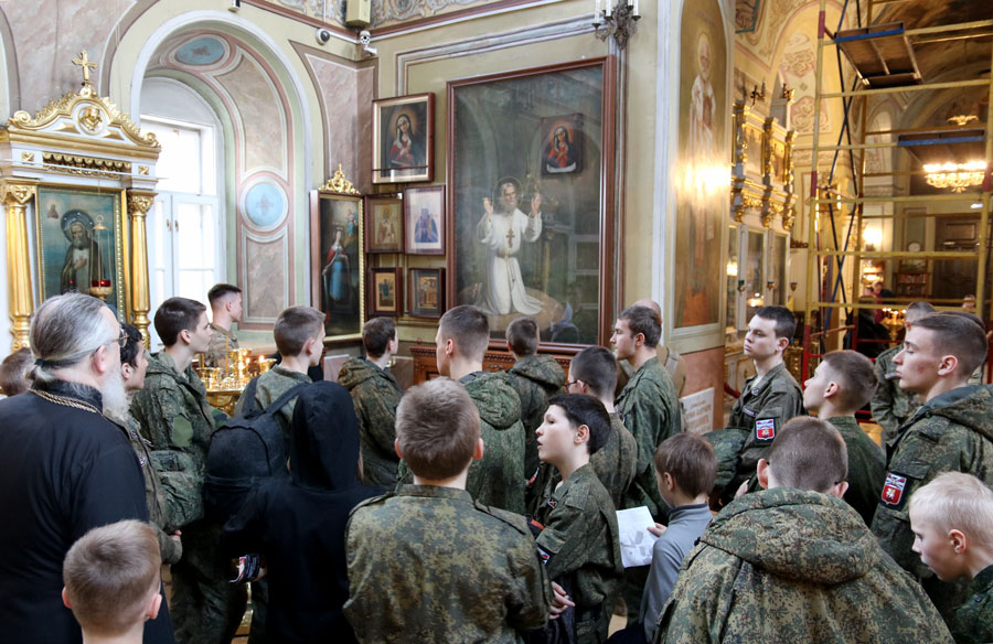 Кадеты познакомились с историей нашего храма, его святынями, узнали о чудесах, которые совершал пророк Божий Илия, и о священномученике Серафиме (Чичагове), который будучи военным, по благословению святого праведного Иоанна Кронштадтского принял священный сан и стал мучеником за Христа. Ребята спели тропарь, кондак и величание святому пророку Божию Илии, приложились к чудотворной иконе Божией Матери «Нечаянная Радость» и другим святыням.
