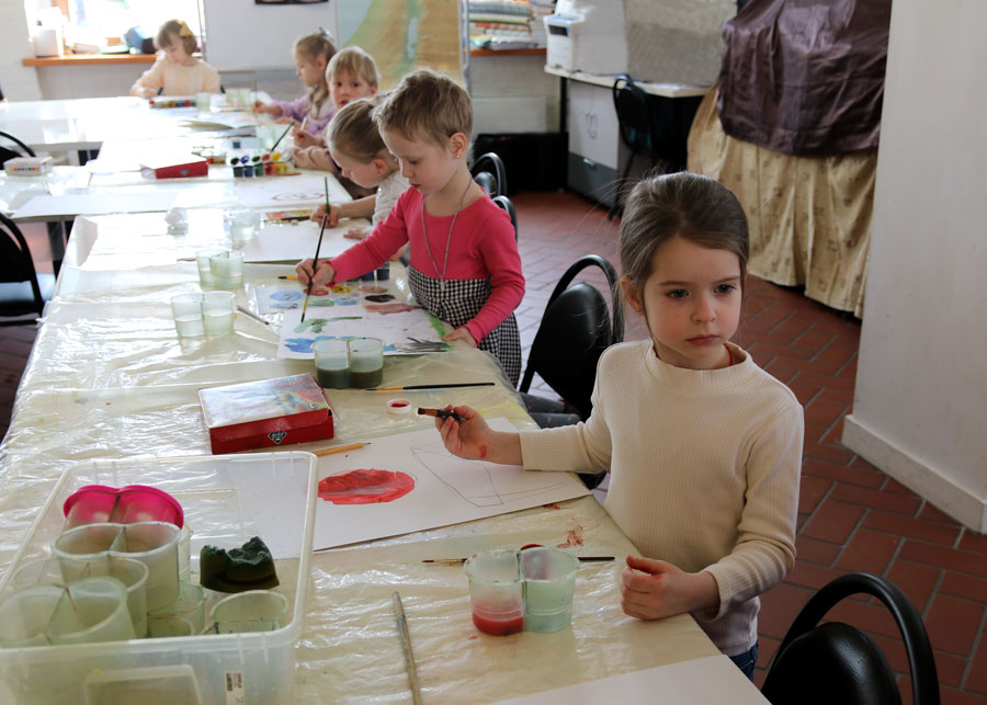 В преддверии светлого праздника Воскресения Христова для учеников воскресной школы и детей прихожан было организовано занятие по рисованию.