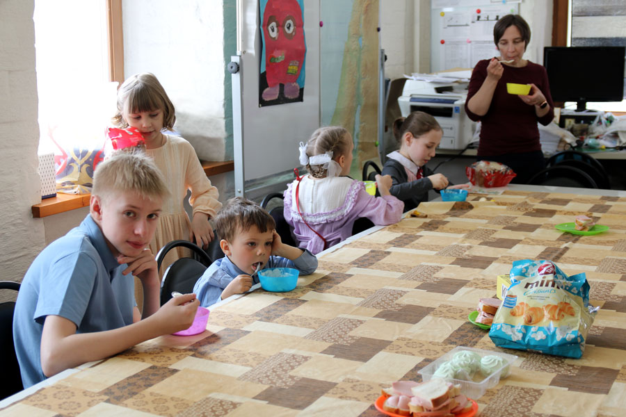 Затем было организовано угощение с традиционным мороженым и сладостями. В празднике приняло участие около двадцати ребят от 3 до 13 лет. Дети и взрослые получили разнообразные подарки — православные книги и журналы, сладости, игрушки.