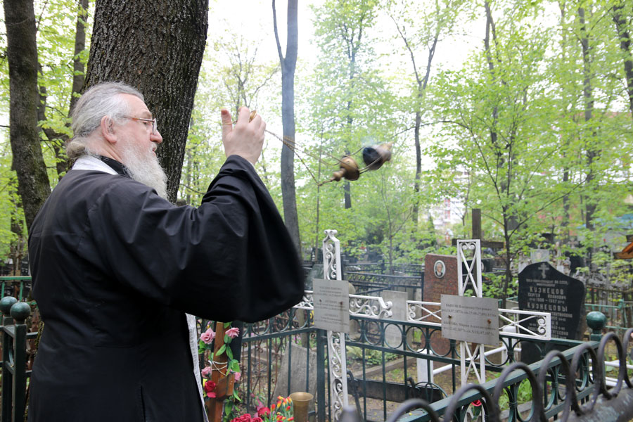 В неделю жен-мироносиц после поздней Божественной литургии протоиерей Николай Скурат отслужил панихиду на Немецком кладбище. Собравшиеся посетили места погребения святого праведного Алексия Мечёва (†1923; его мощи пребывают в храме святителя Николая в Кленниках) и преподобноисповедницы Фамари (Марджановой; †1936, святые мощи находятся в Серафимо-Знаменском скиту), а также могилы священника нашего храма протоиерея Александра Егорова (†2000), протоиерея Александра Толгского (†1962) — настоятеля Илие-Обыденского храма в 1936–1962 годы, заштатного клирика нашего храма иерея Сергия Борздыки (†1992) и других московских священнослужителей, а также обыденских прихожан, покоящихся на этом кладбище, где спели пасхальный тропарь и «вечную память» почившим.