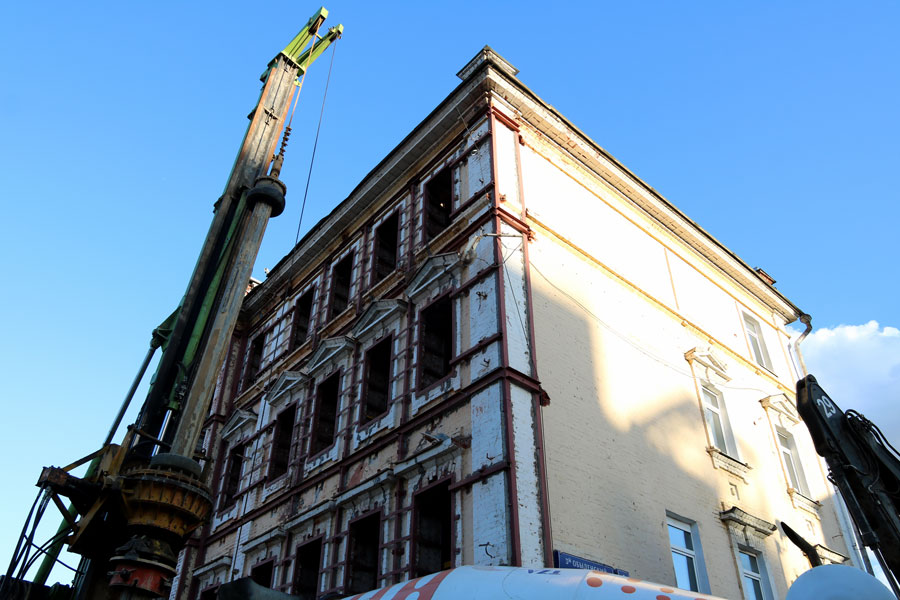 Главной целью посещения было ознакомление с проектом фирмы Sminex-Интеко по застройке участка земли, соседствующего с территорией нашего храма с юга. На этой земле в последнее время находились здание электроподстанции для строительства Дворца Советов, построенное в 1930-е годы, и два двухэтажных заводских корпуса, ныне снесенные, а также флигель дома Ковригиных, единственно уцелевший из всего Ковригинского комплекса построек, разрушенных фугасной бомбой немецко-фашистскими налетчиками в 1941 г.