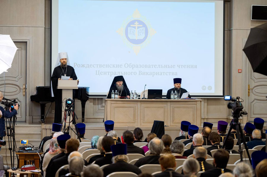 8 ноября 2023 года в актовом зале Сретенской духовной академии под председательством первого викария Патриарха Московского и всея Руси по городу Москве и управляющего Центральным викариатством митрополита Воскресенского Григория прошло пленарное заседание Рождественских образовательных чтений Центрального викариатства «Православие и отечественная культура: потери и приобретения минувшего, образ будущего».