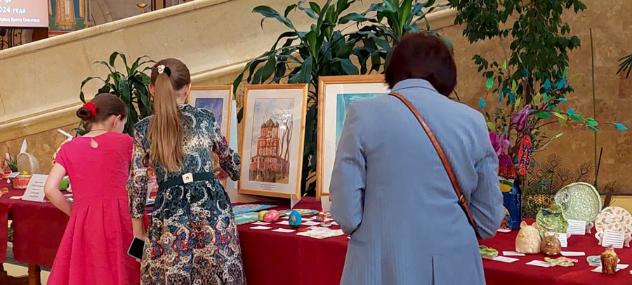 С 16 по 26 мая 2024 г. в Культурном центре «Новослободский» состоялась выставка детского творчества «Дни славянской письменности и культуры», которая прошла в рамках фестиваля воскресных школ и православных объединений Центрального викариатства «Сретение». На выставке было представлено шесть работ учащихся нашей воскресной школы, выполненных на занятиях с педагогом А. Н. Скурат.